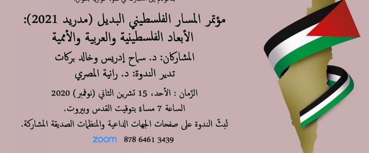 عقدتْ مجلّة الآداب، وحملةُ مقاطعة داعمي "اسرائيل" في لبنان، وشبكةُ صامدون، ندوةً رقميّةً بتاريخ 15/11/2020، بعنوان: "مؤتمر المسار الفلسطينيّ البديل - الأبعادُ الفلسطينيّة والعربيّة والأمميّة." شارك في الندوة: سماح إدريس وخالد بركات، وأدارتْها: رانية المصري. هنا كلمةُ بركات. لقراءة كلمة إدريس، أنقرْ هنا.